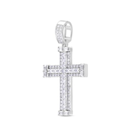 MEN’S CHARM PENDANT 3CT ROUND/EMERALD DIAMOND 14K WHITE GOLD