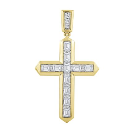 LADIES CROSS PENDANT WITH CHAIN 5CT ROUND DIAMOND 14K YELLOW GOLD