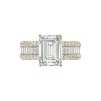 Luxury 14K Yellow Gold Ladies Diamond Ring 4.00CT Round, Emerald & Baguette Diamonds with 3.00CT Emerald Center stone (Color F-G -Clarity VS1/VS2)