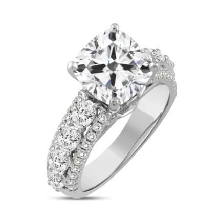 LADIES RING 5 1/4CT ROUND/CUSHION DIAMOND 14K WHITE GOLD (CENTER STONE CUSHION DIAMOND 4CT )