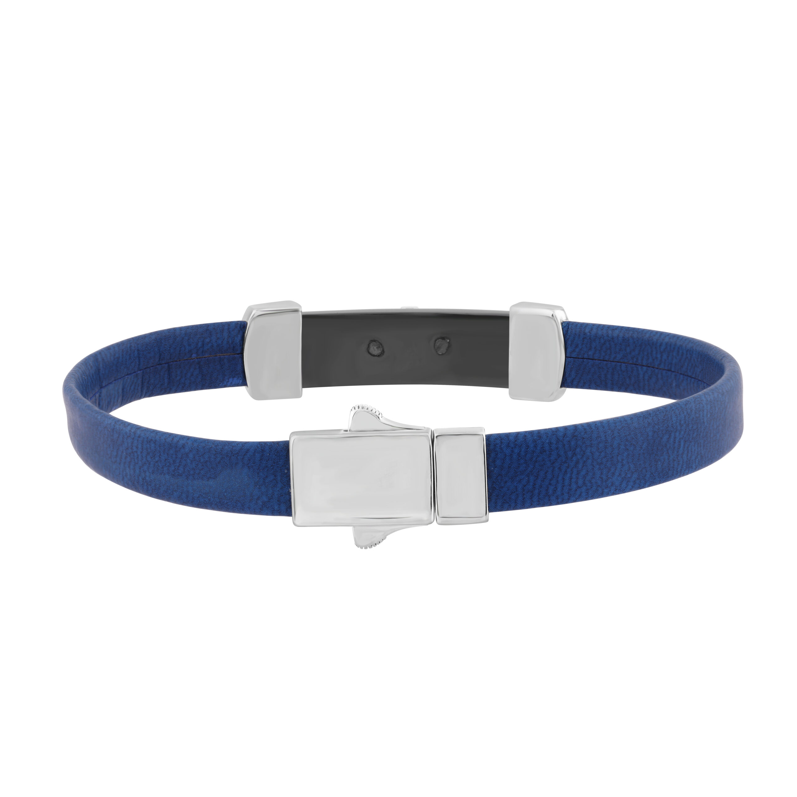 0.25 Ct Round Diamond Men’S Bracelet – Sterling Silver White With Rubber Strap (Blue/Black)