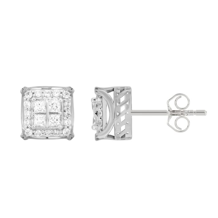 10K WHITE GOLD 1.00CT ROUND/PRINCESS DIAMOND LADIES EARRINGS