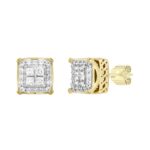 10K YELLOW GOLD 1.00CT ROUND/PRINCESS DIAMOND LADIES EARRINGS
