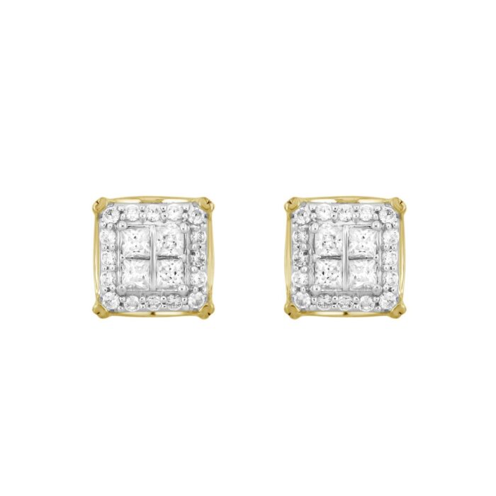 10K YELLOW GOLD 1.00CT ROUND/PRINCESS DIAMOND LADIES EARRINGS