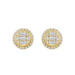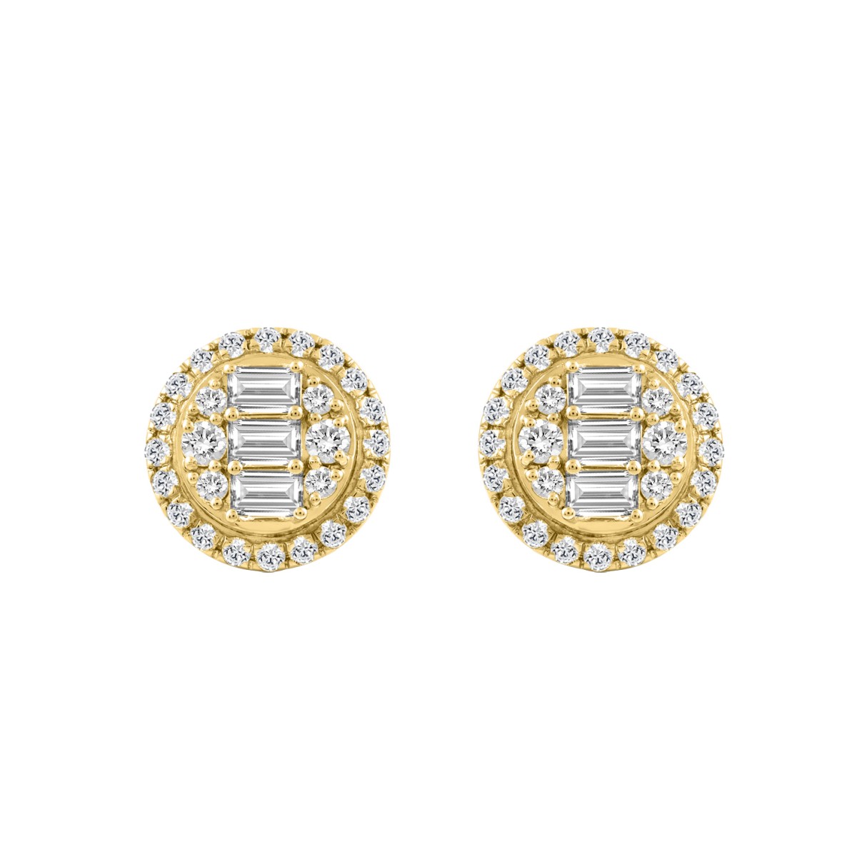 10K YELLOW GOLD 1 1/4CT ROUND/EMERALD DIAMOND LADIES EARRINGS