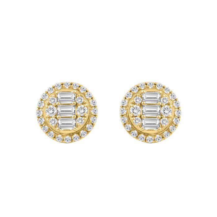 10K YELLOW GOLD 1 1/4CT ROUND/EMERALD DIAMOND LADIES EARRINGS
