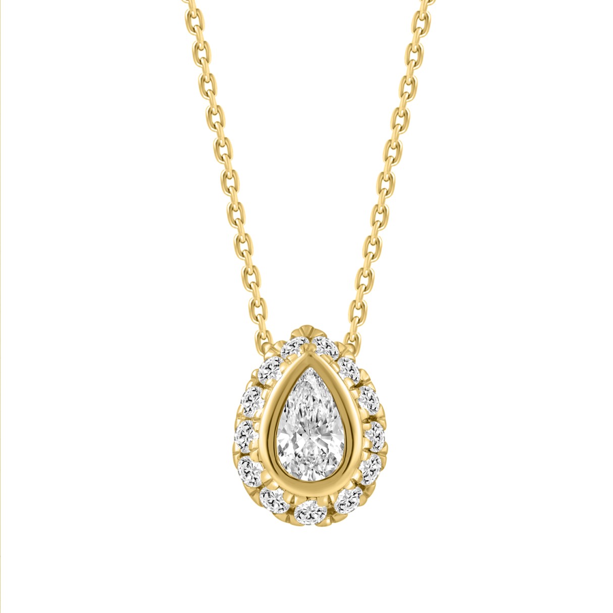 10K YELLOW GOLD 1/3CT ROUND/PEAR DIAMOND LADIES NECKLACE