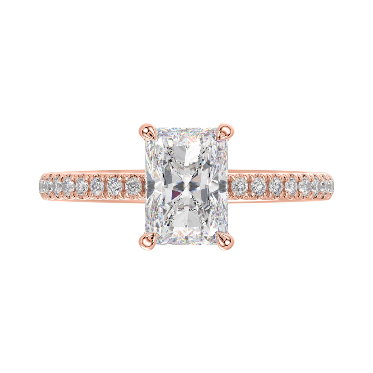 14K ROSE GOLD 1 3/4CT ROUND/RADIANT DIAMOND LADIES RING (CENTER STONE RADIANT DIAMOND 1 1/2CT)