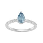 14K White Gold 1.00Ct Pear Cut Blue Sapphire Diamond Ring 3/4Ct Center Stone With Round Diamond Side Stones, For Women Engagement Ring, (Color F-G Cl