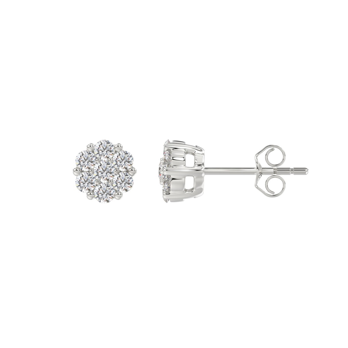 14K WHITE GOLD 1.00CT ROUND DIAMOND LADIES FLOWER EARRINGS