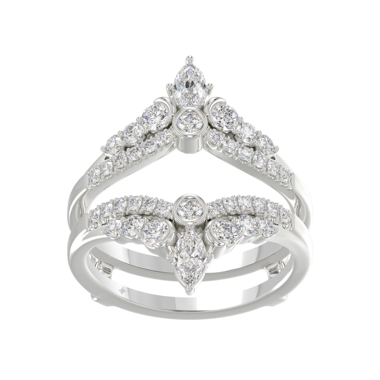 14K WHITE GOLD 1.00CT ROUND/MARQUISE DIAMOND LADIES RING