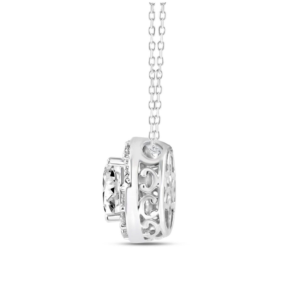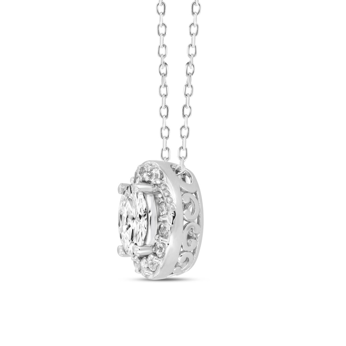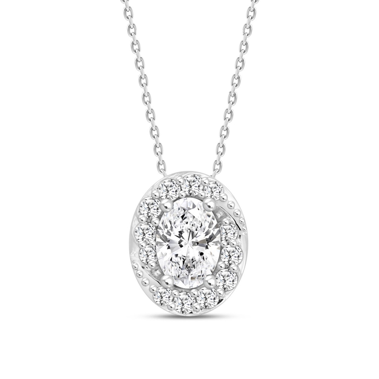 14K WHITE GOLD 1.00CT ROUND/OVAL DIAMOND LADIES PENDANT WITH CHAIN (CENTER STONE OVAL DIAMOND 3/4CT)