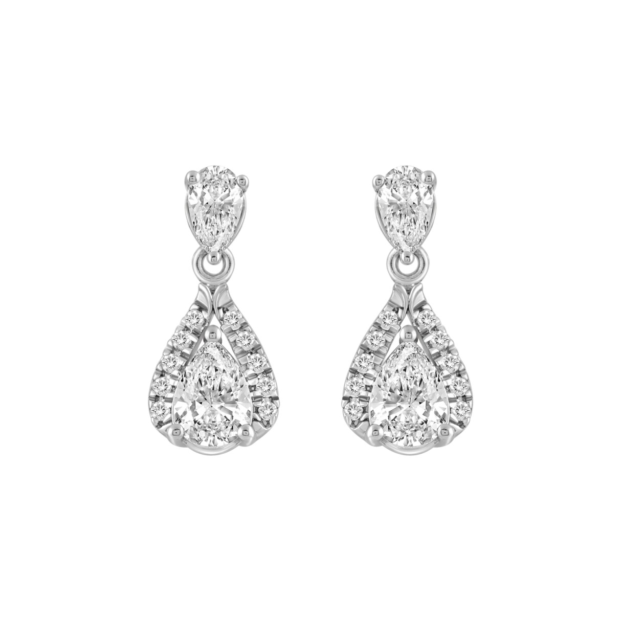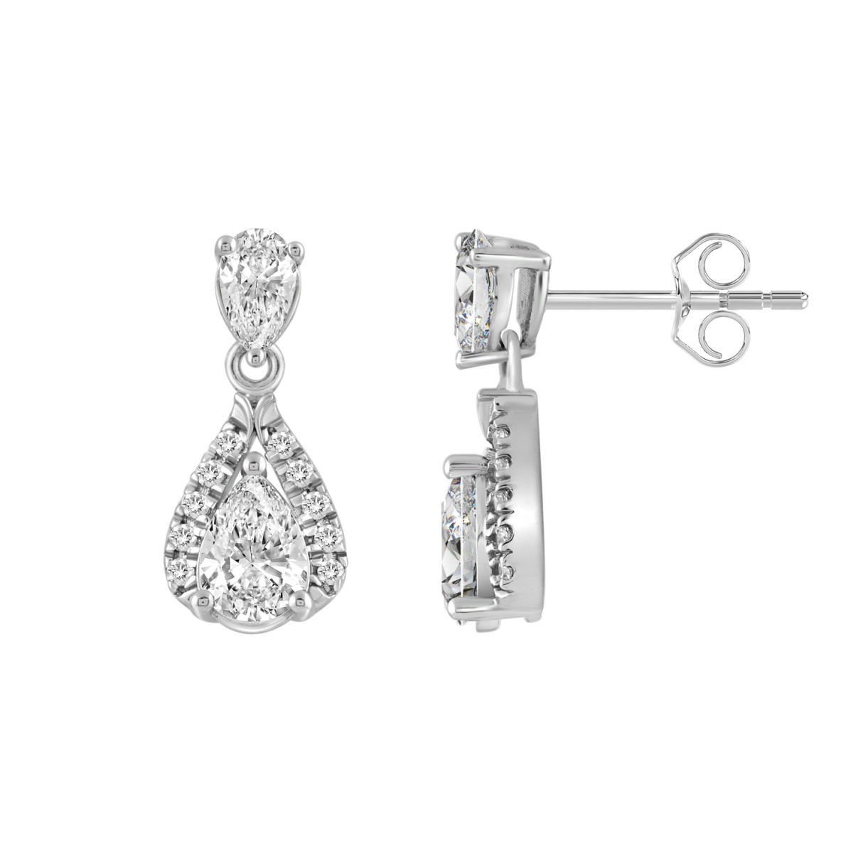 14K WHITE GOLD 1.00CT ROUND/PEAR DIAMOND LADIES EARRING