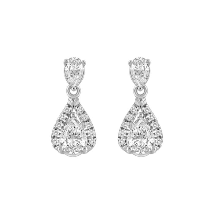 14K WHITE GOLD 1.00CT ROUND/PEAR DIAMOND LADIES EARRING