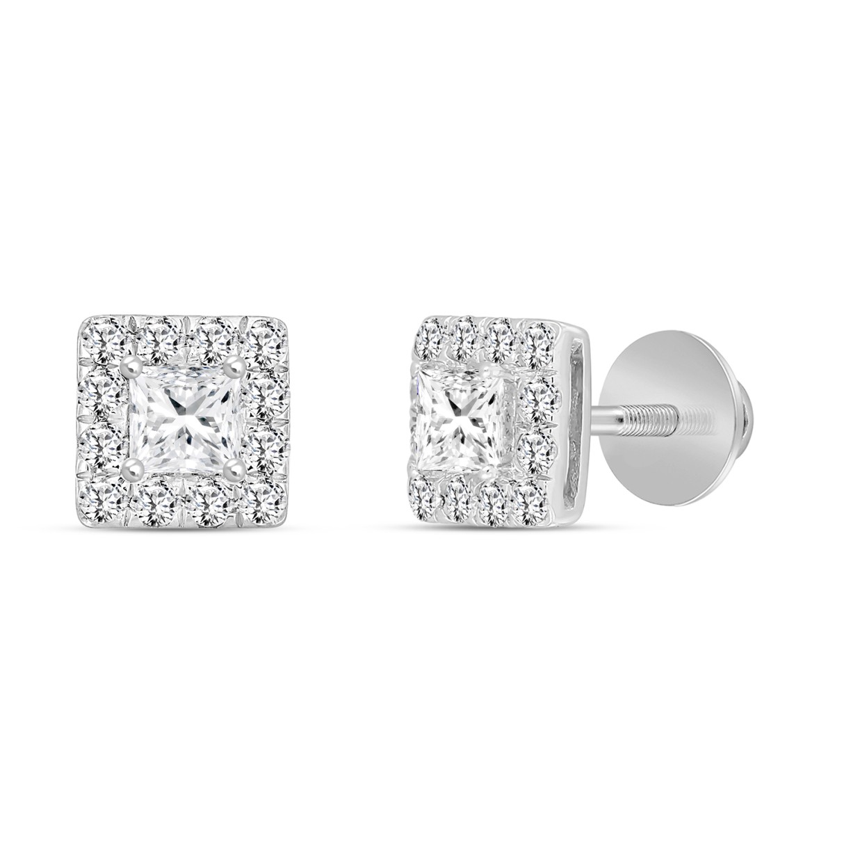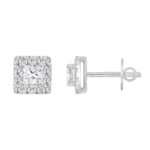 14K WHITE GOLD 1.00CT ROUND/PRINCESS DIAMOND LADIES EARRINGS