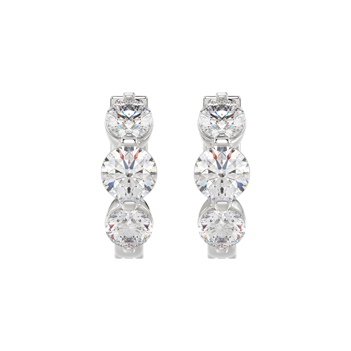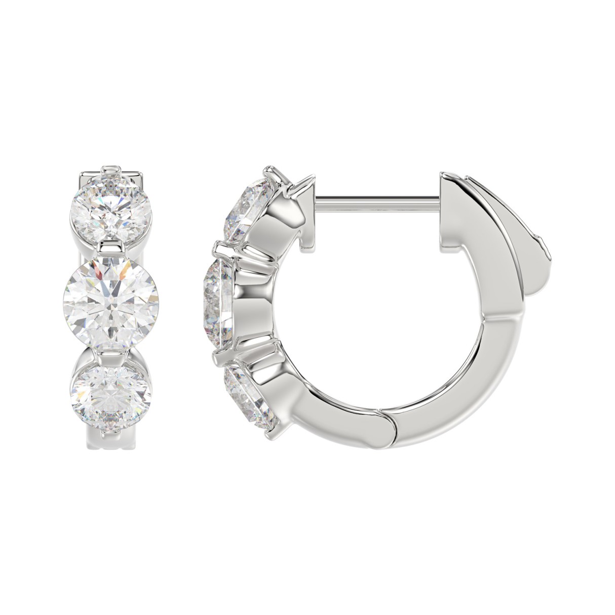 14K WHITE GOLD 1 1/2CT ROUND DIAMOND LADIES HOOPS EARRINGS