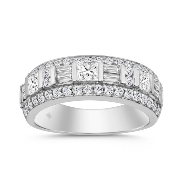 14K WHITE GOLD 1 1/4CT ROUND/BAGUETTE/PRINCESS DIAMOND LADIES BAND