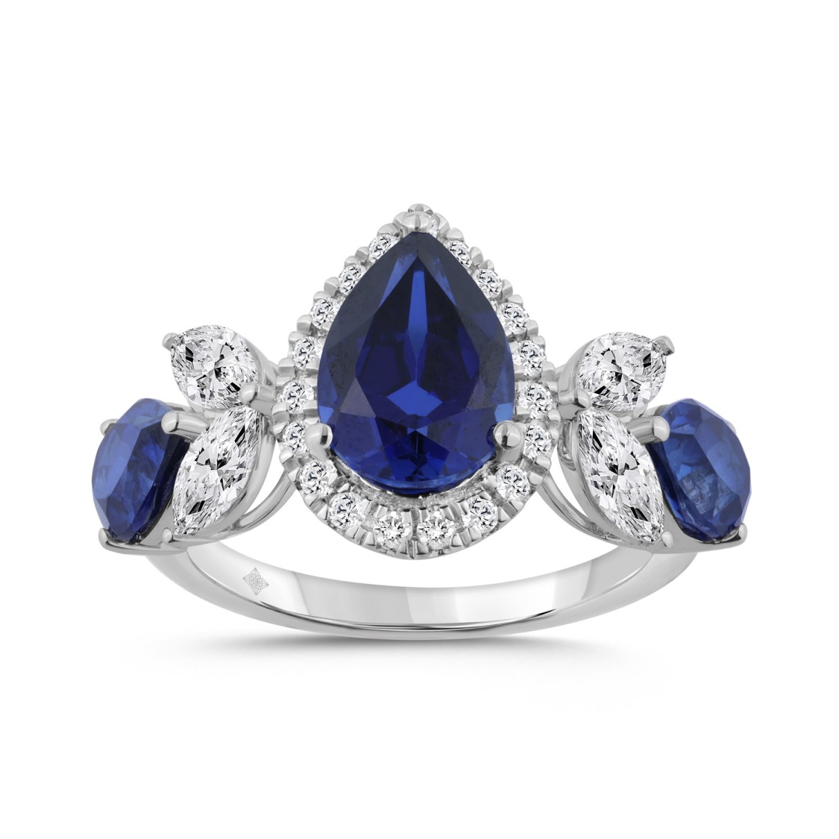 14K WHITE GOLD 1 1/4CT ROUND/MARQUISE/BLUE SAPPHIRE PEAR DIAMOND LADIES RING