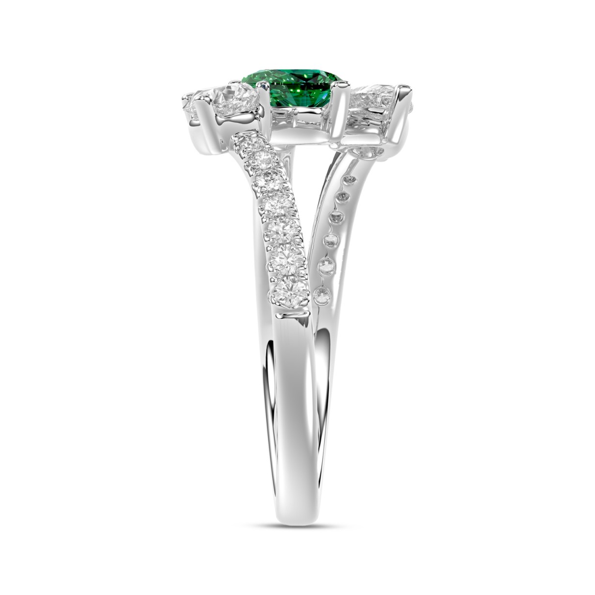 14K WHITE GOLD 1 1/4CT ROUND/PEAR EMERALD GREEN DIAMOND LADIES RING (GREEN EMERALD PEAR 1/2CT)