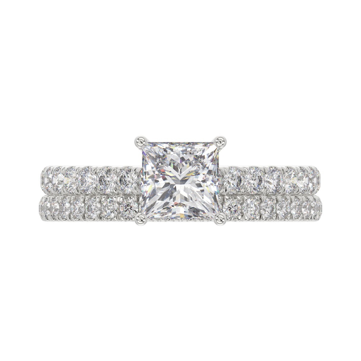 14K WHITE GOLD 1 3/4CT ROUND/PRINCESS DIAMOND LADIES BRIDAL SET (CENTER STONE PRINCESS DIAMOND 1CT)