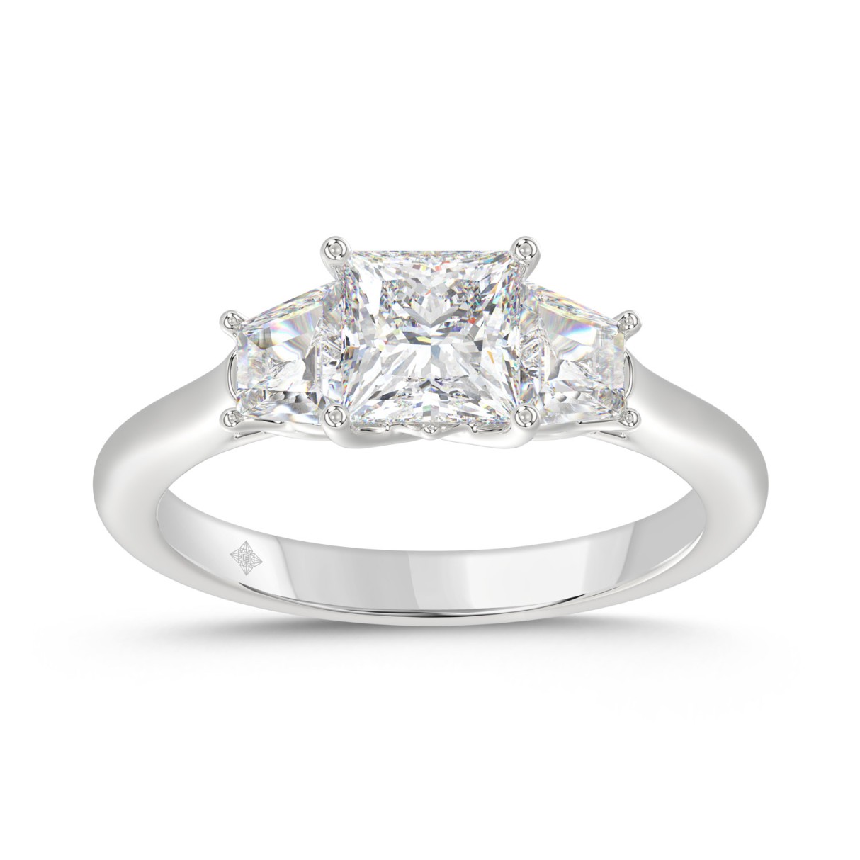 14K WHITE GOLD 1 5/8CT PRINCESS/TRAPEZOID DIAMOND LADIES RING (CENTER STONE PRINCESS DIAMOND 1 1/5CT)