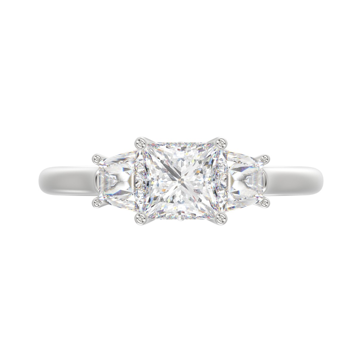 14K WHITE GOLD 1 5/8CT PRINCESS/TRAPEZOID DIAMOND LADIES RING (CENTER STONE PRINCESS DIAMOND 1 1/5CT)