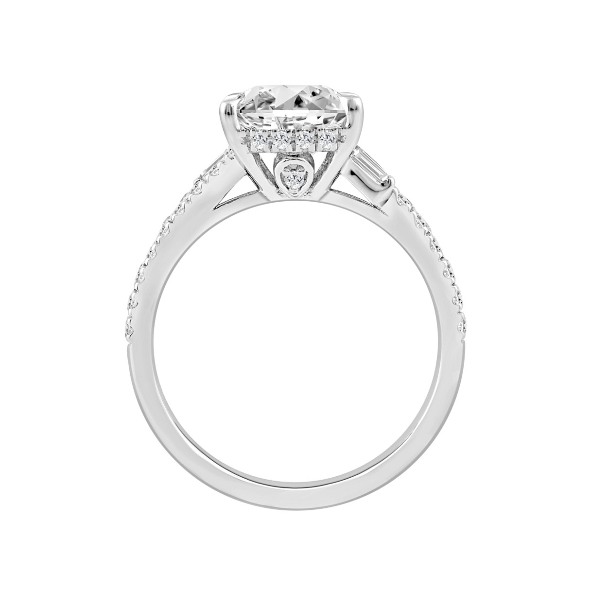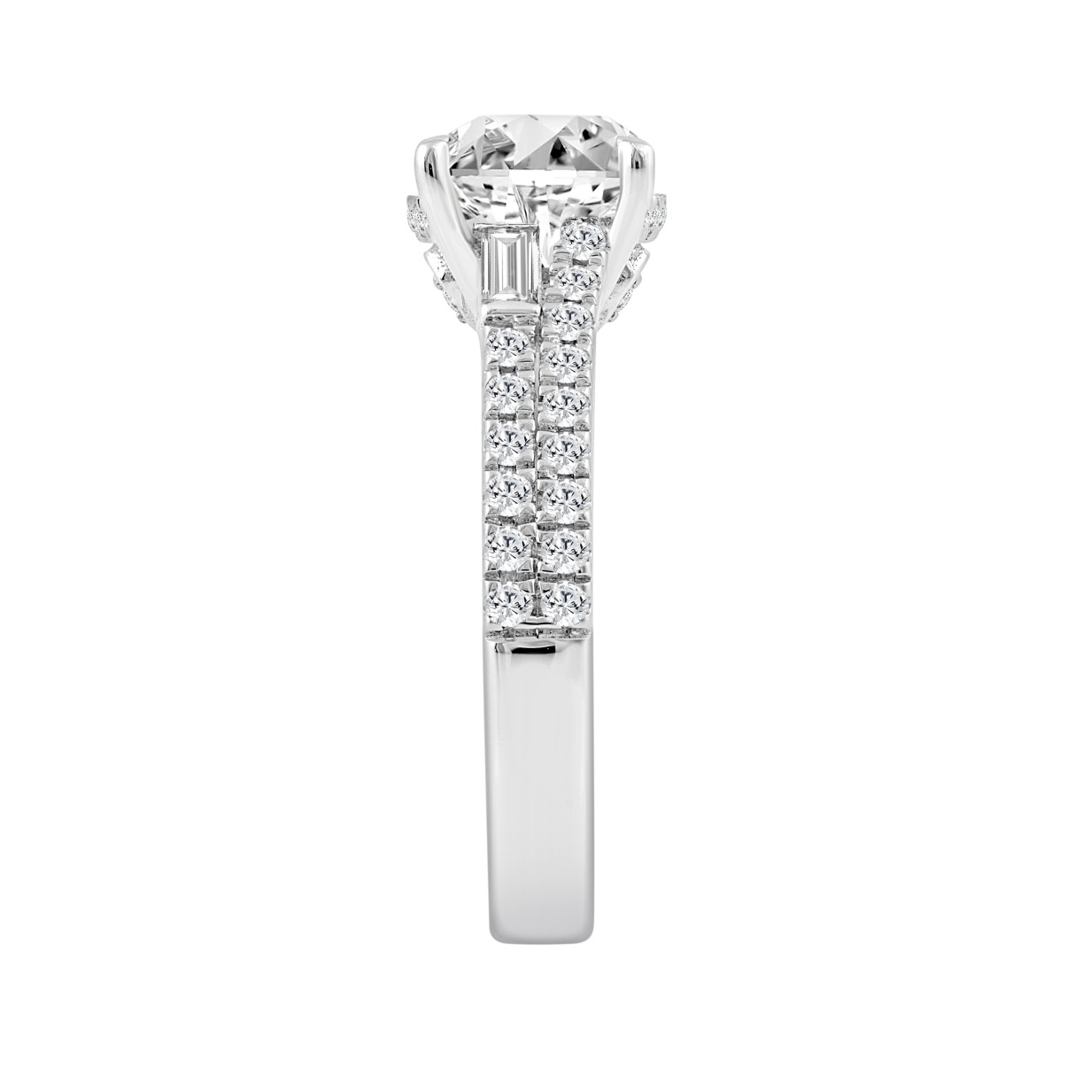 14K WHITE GOLD 2 1/2CT ROUND/CUSHION/BAGUETTE DIAMOND LADIES RING (CENTER STONE CUSHION DIAMOND 2CT)