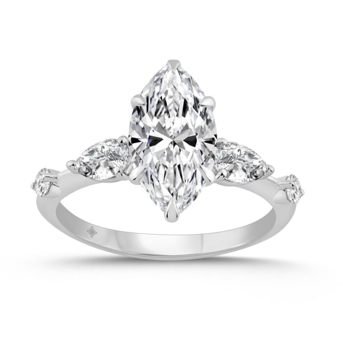 14K WHITE GOLD 2 1/2CT ROUND/MARQUISE/PEAR DIAMOND LADIES RING (CENTER STONE MARQUISE DIAMOND 2CT)