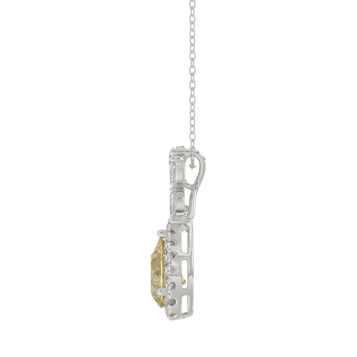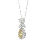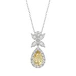 14K WHITE GOLD 2 1/2CT ROUND/MARQUISE/YELLOW PEAR DIAMOND LADIES PENDANT WITH CHAIN