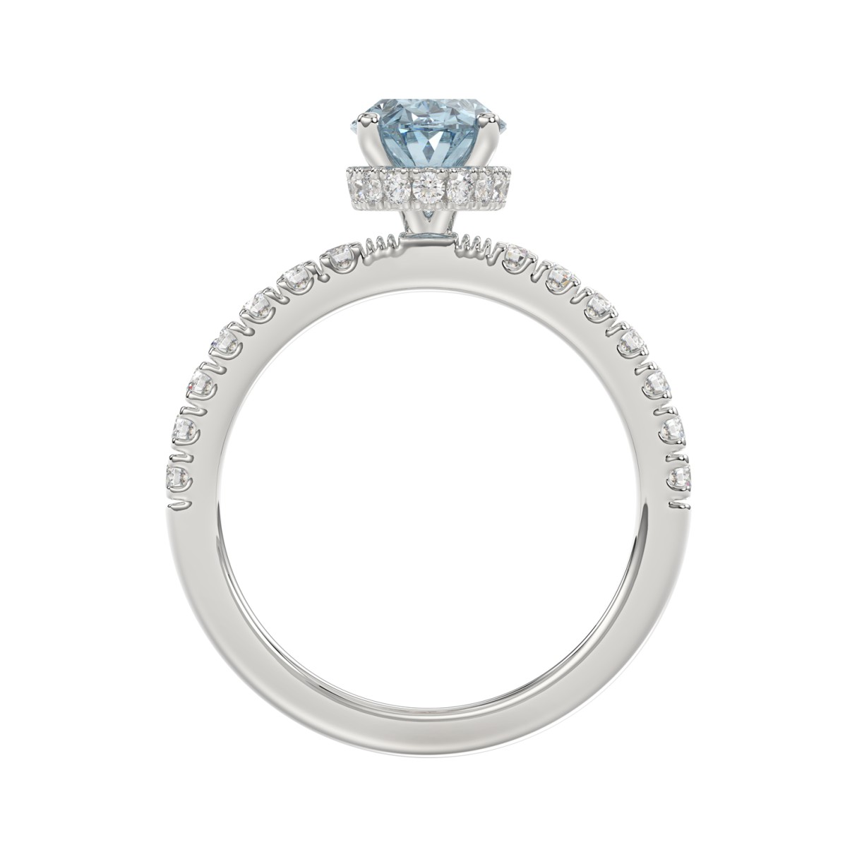 14K WHITE GOLD 2 1/2CT ROUND/OVAL DIAMOND LADIES RING (CENTER STONE BLUE OVAL DIAMOND 2CT)