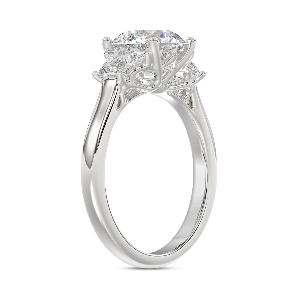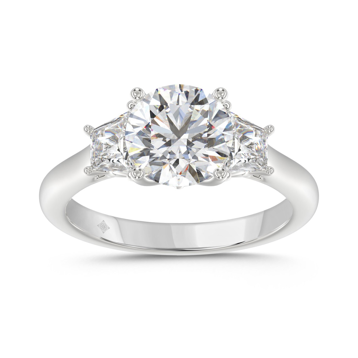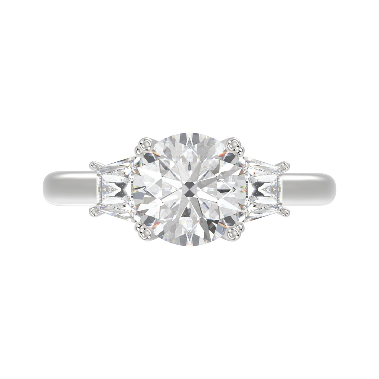 14K WHITE GOLD 2 1/2CT ROUND/TRAPEZOID DIAMOND LADIES RING (CENTER STONE ROUND DIAMOND 2CT)
