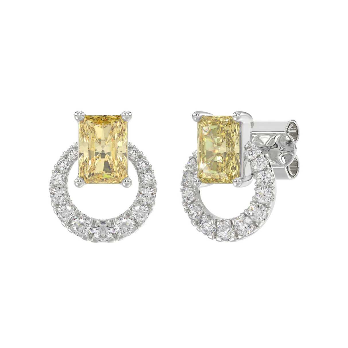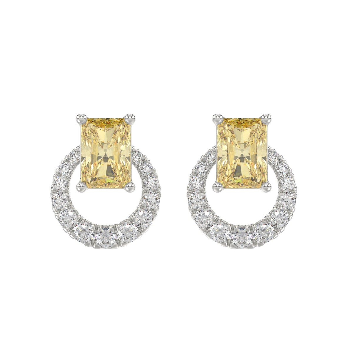 14K WHITE GOLD 2 1/2CT ROUND/YELLOW RADIANT DIAMOND LADIES EARRINGS