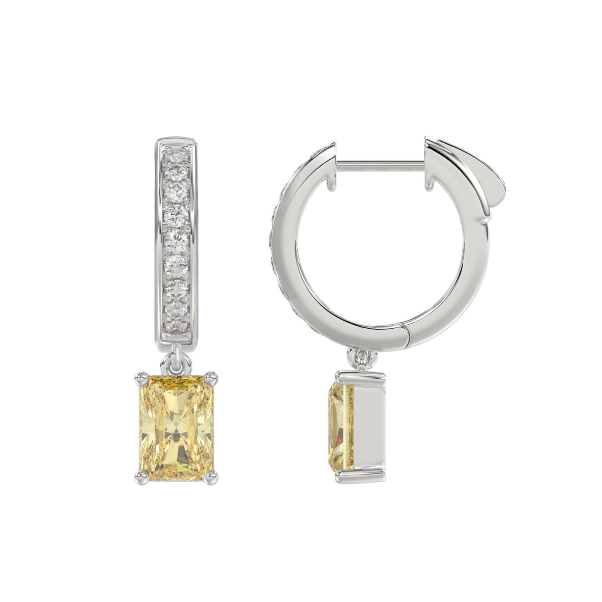14K WHITE GOLD 2 1/4CT ROUND/YELLOW RADIANT DIAMOND LADIES EARRINGS