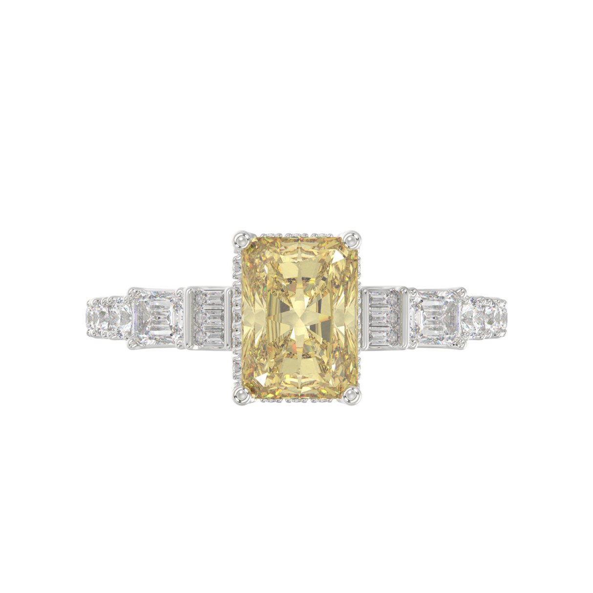 14K WHITE GOLD 2 3/4CT ROUND/BAGUETTE/EMERALD DIAMOND LADIES BRIDAL SET (CENTER STONE RADIANT YELLOW DIAMOND 2.00CT)