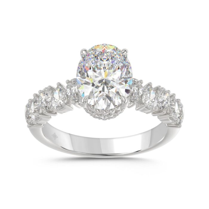 14K WHITE GOLD 2 3/4CT ROUND/OVAL/PEAR DIAMOND LADIES RING (CENTER STONE OVAL DIAMOND 2CT)