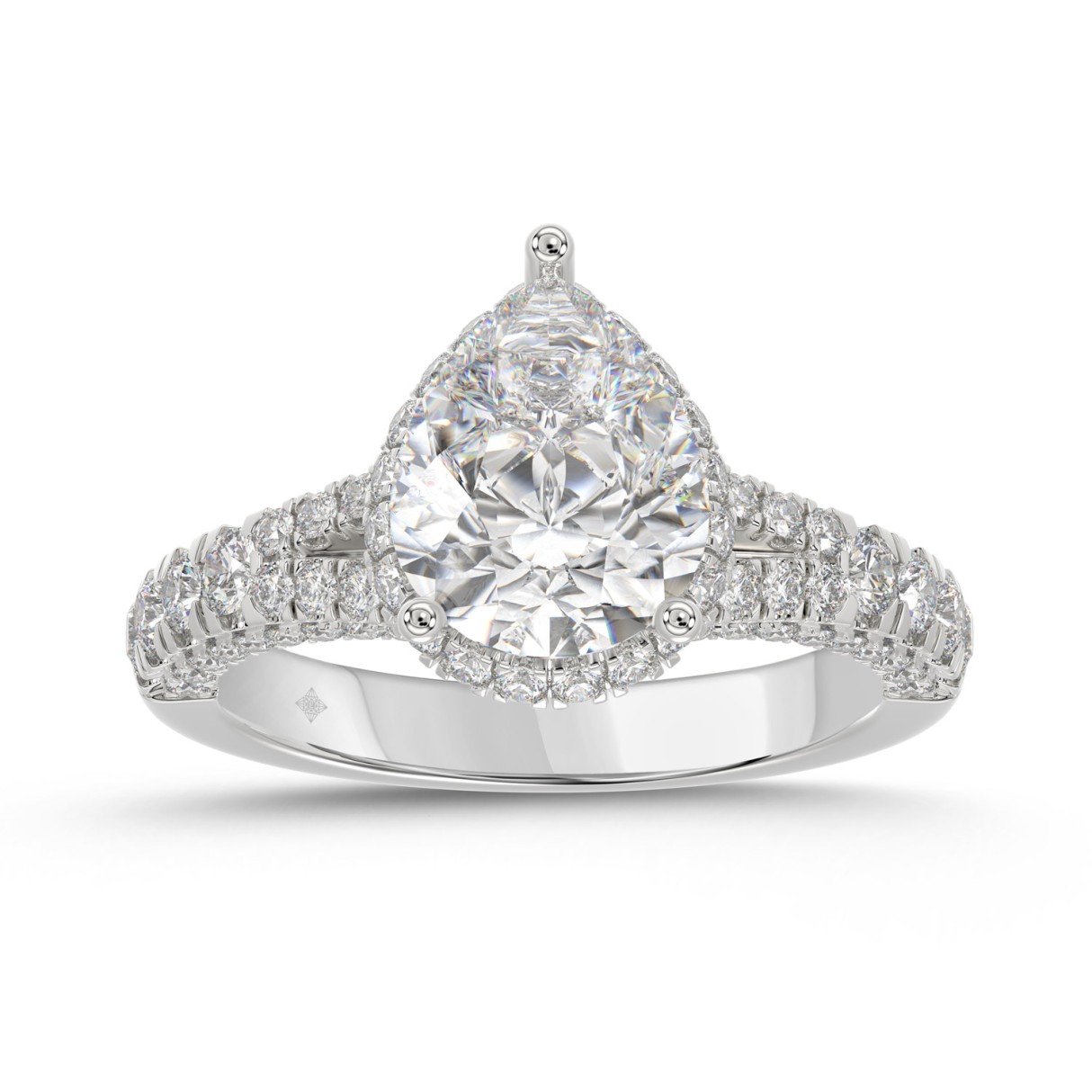 14K WHITE GOLD 2 3/4CT ROUND/PEAR DIAMOND LADIES RING (CENTER STONE PEAR DIAMOND 2CT)