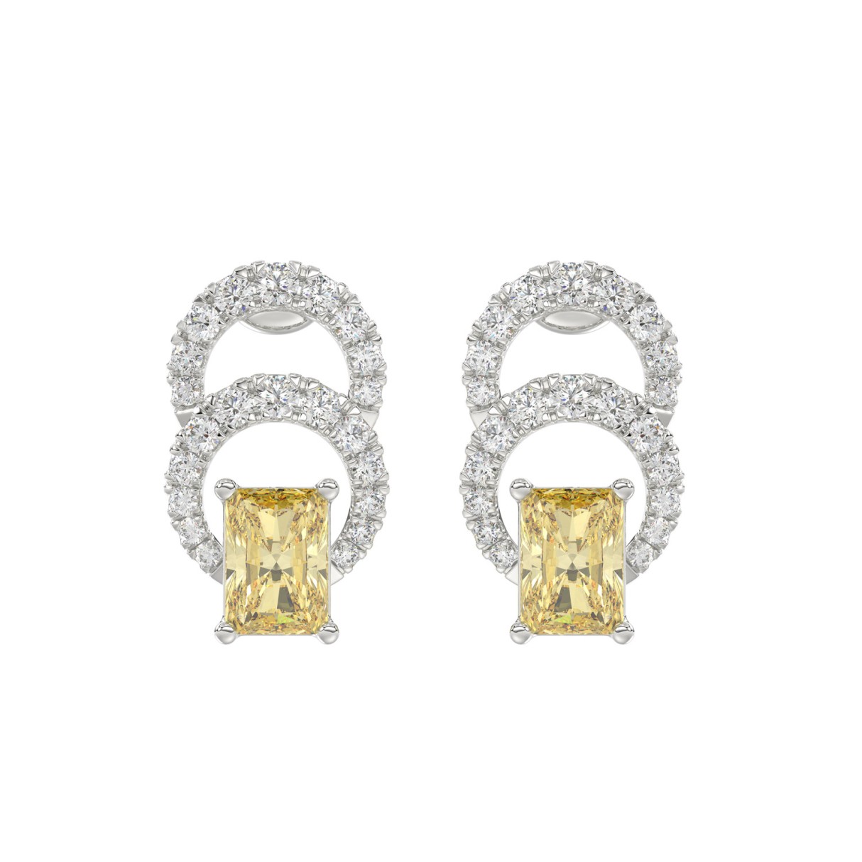 14K WHITE GOLD 2 3/4CT ROUND/YELLOW RADIANT DIAMOND LADIES EARRINGS