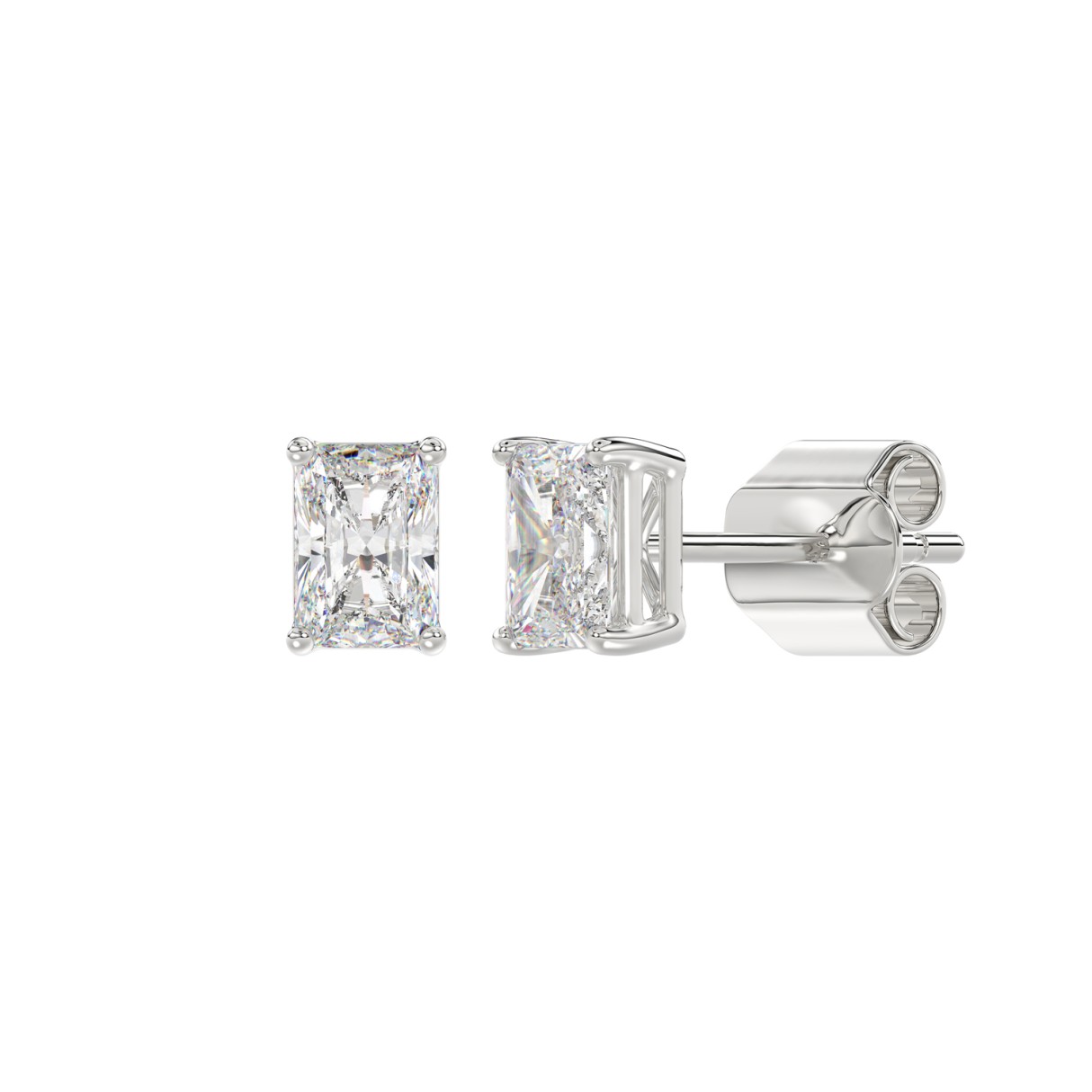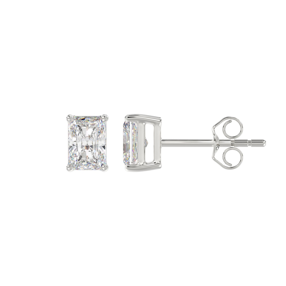 14K WHITE GOLD 2CT RADIANT DIAMOND LADIES SOLITAIRE EARRINGS