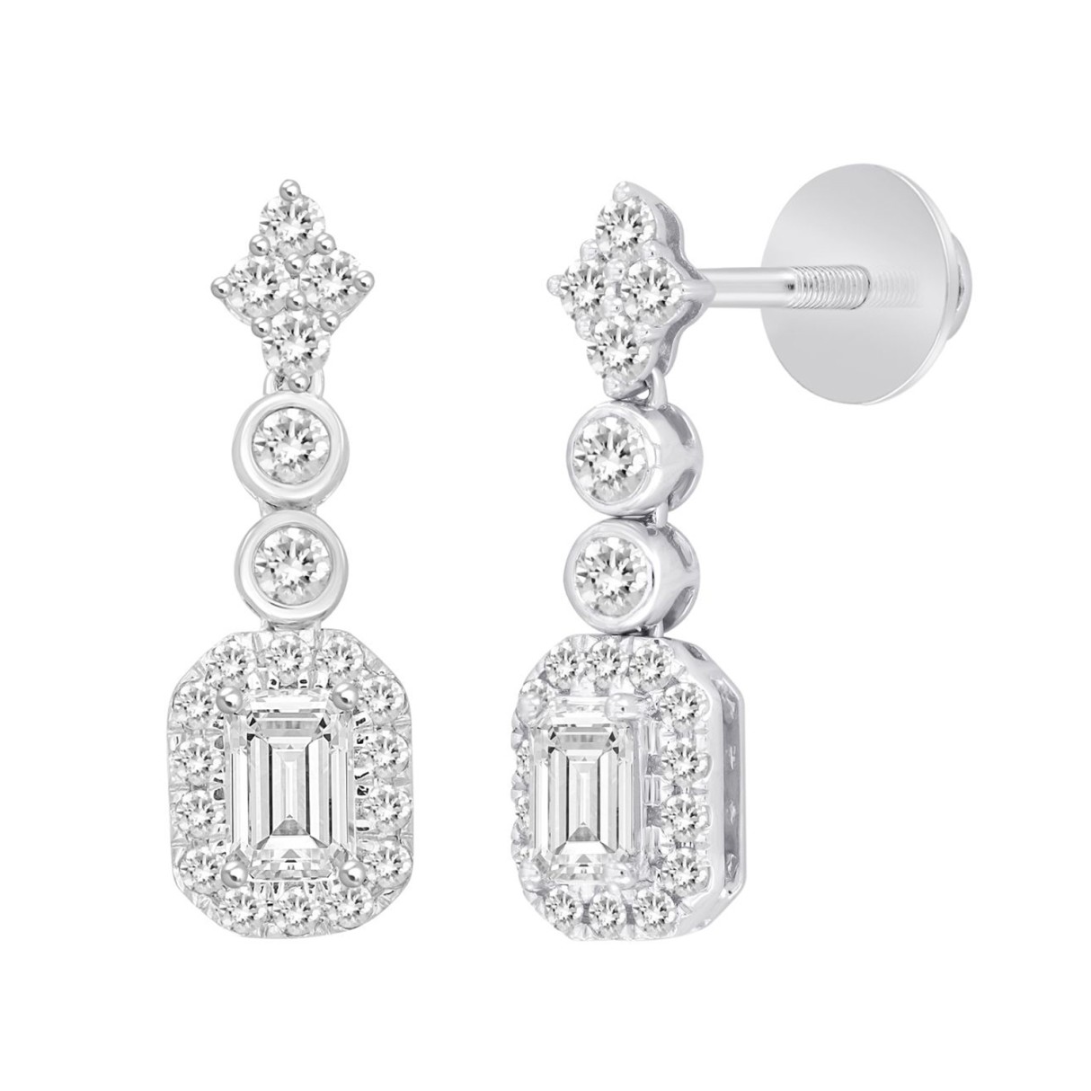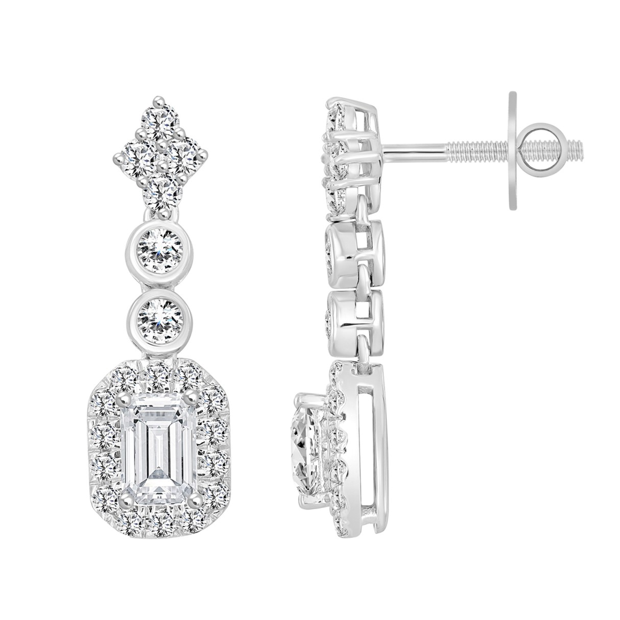 14K WHITE GOLD 2CT ROUND EMERALD DIAMOND LADIES LINEAR EARRINGS (CENTER STONE EMERALD DIAMOND 1CT )