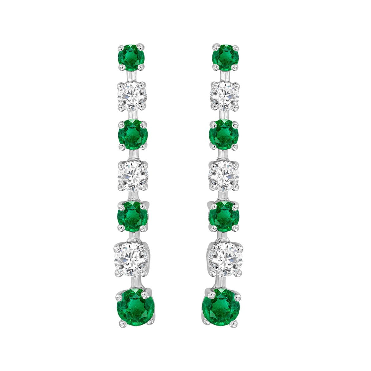 14K WHITE GOLD 3.00CT ROUND DIAMOND LADIES EARRINGS (GREEN EMERALD ROUND 2 1/5CT)