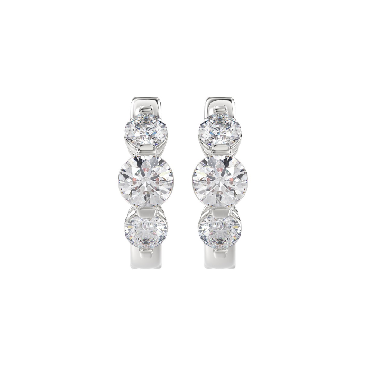 14K WHITE GOLD 3.00CT ROUND DIAMOND LADIES HOOPS EARRINGS