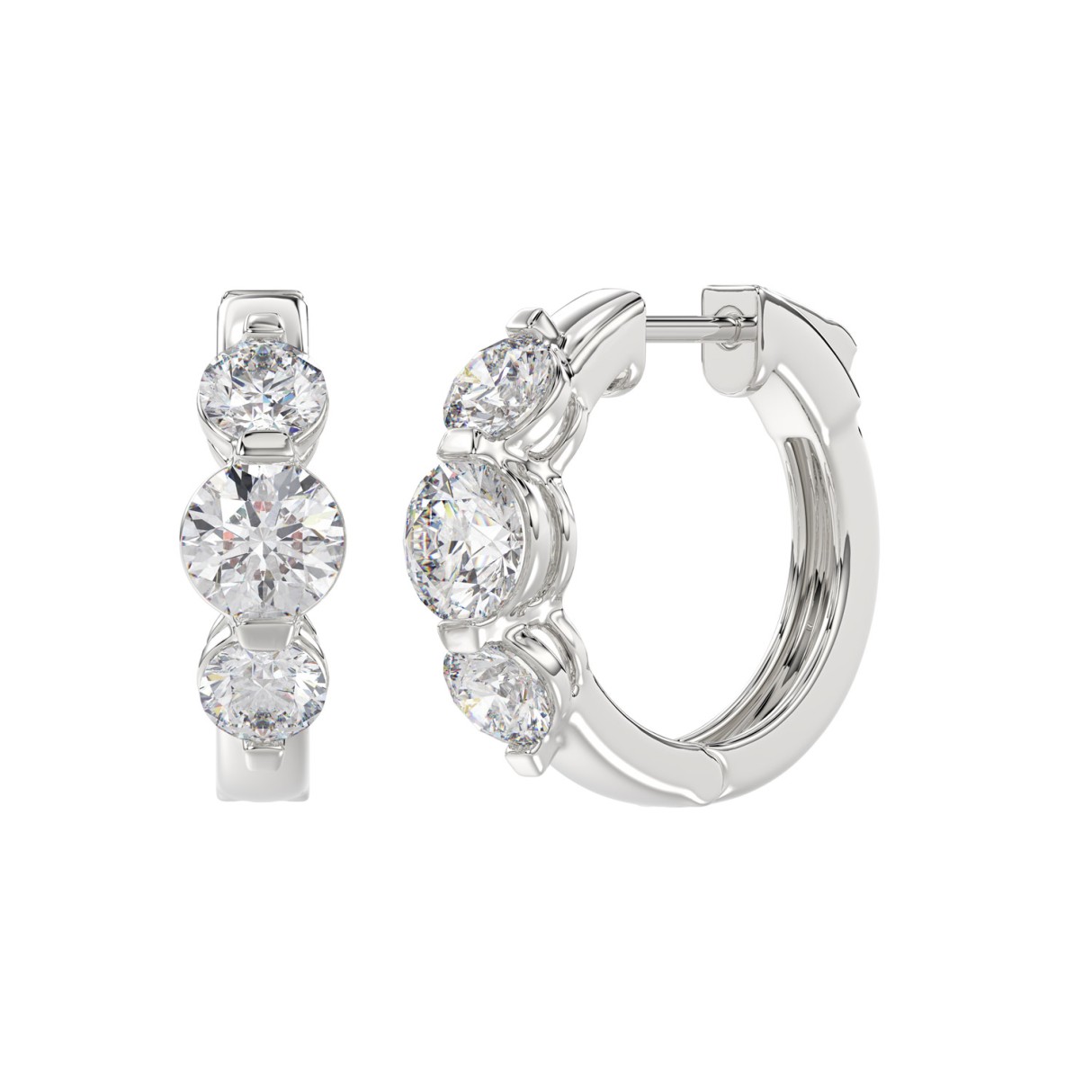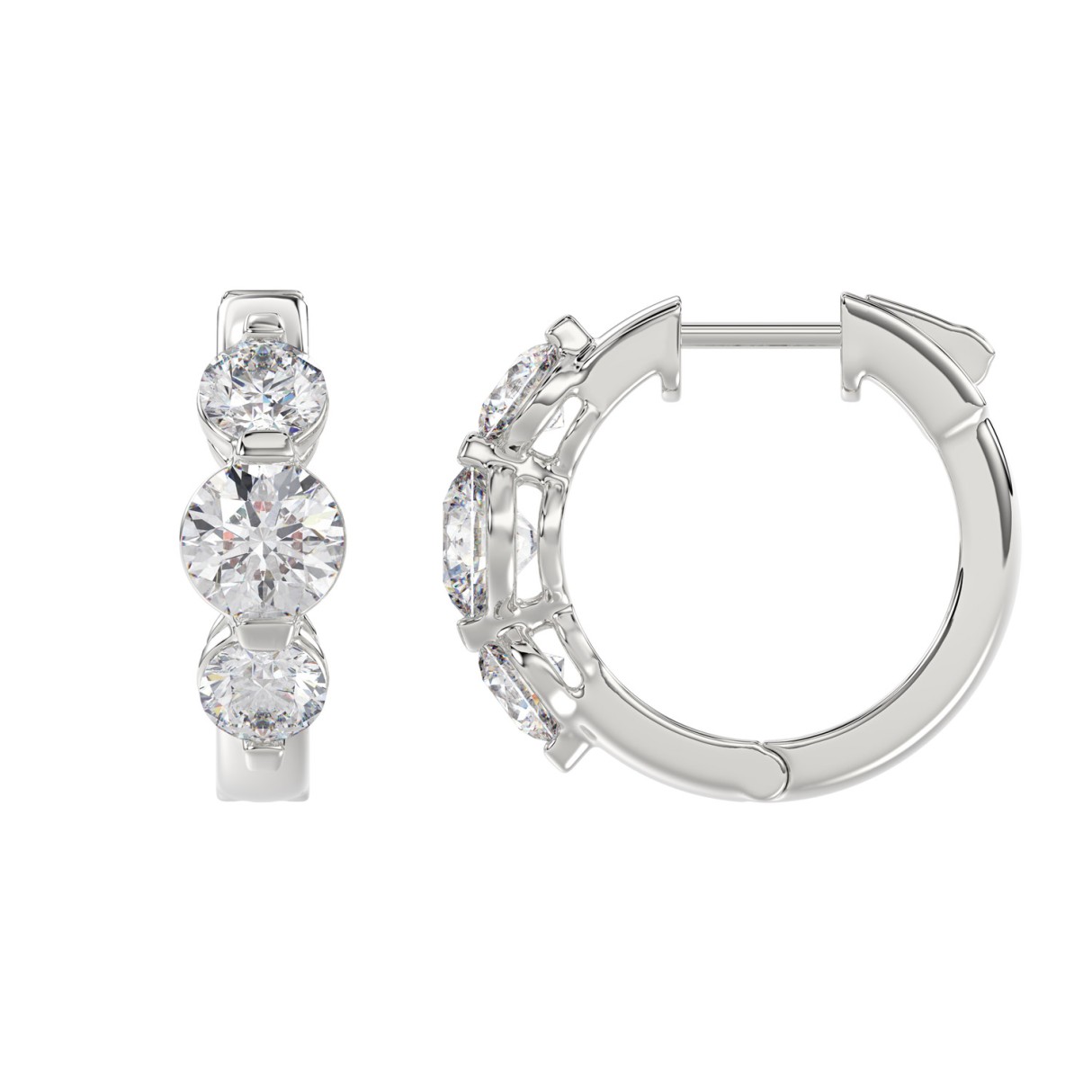 14K WHITE GOLD 3.00CT ROUND DIAMOND LADIES HOOPS EARRINGS