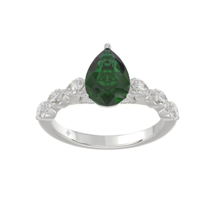 14K WHITE GOLD 3.00CT ROUND/PEAR/MARQUISE DIAMOND LADIES RING (CENTER STONE PEAR GREEN EMERALD DIAMOND 2 1/4CT)