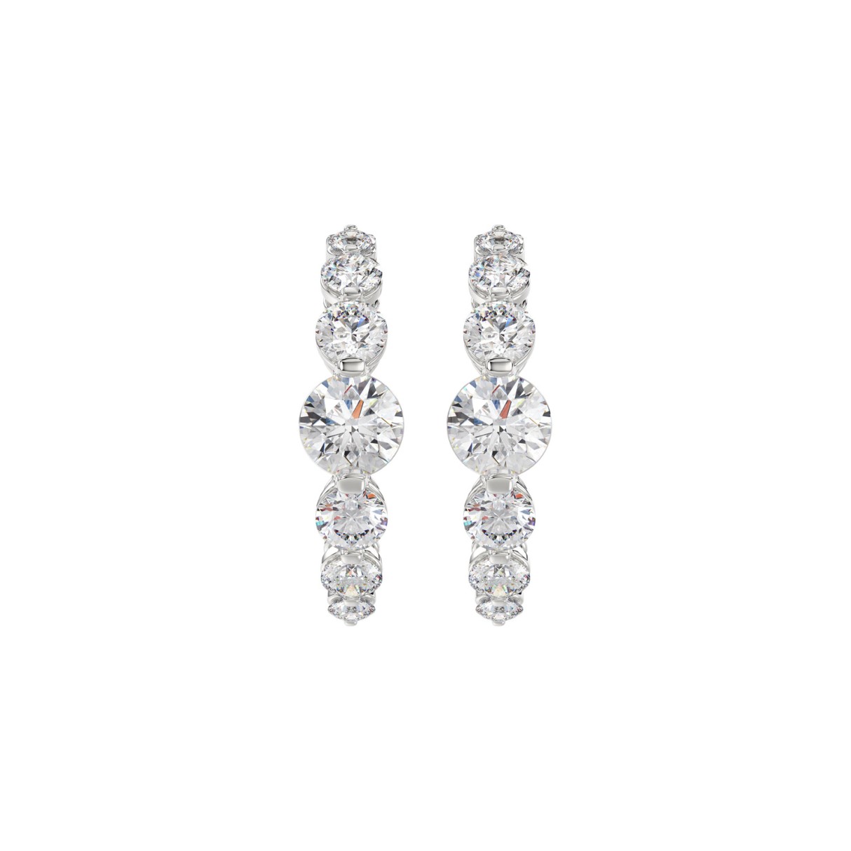 14K WHITE GOLD 3 1/2CT ROUND DIAMOND LADIES HOOPS EARRINGS