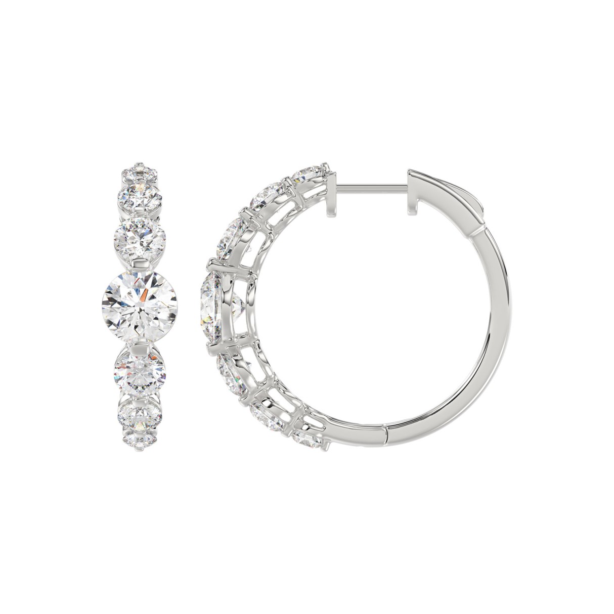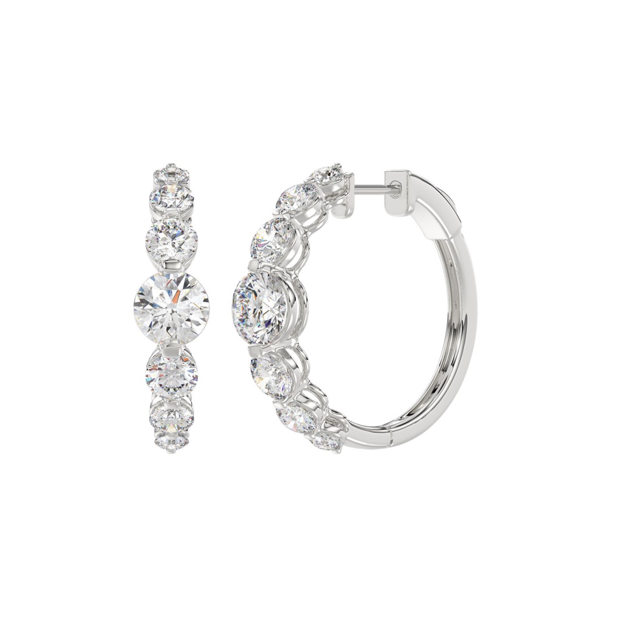 14K WHITE GOLD 3 1/2CT ROUND DIAMOND LADIES HOOPS EARRINGS