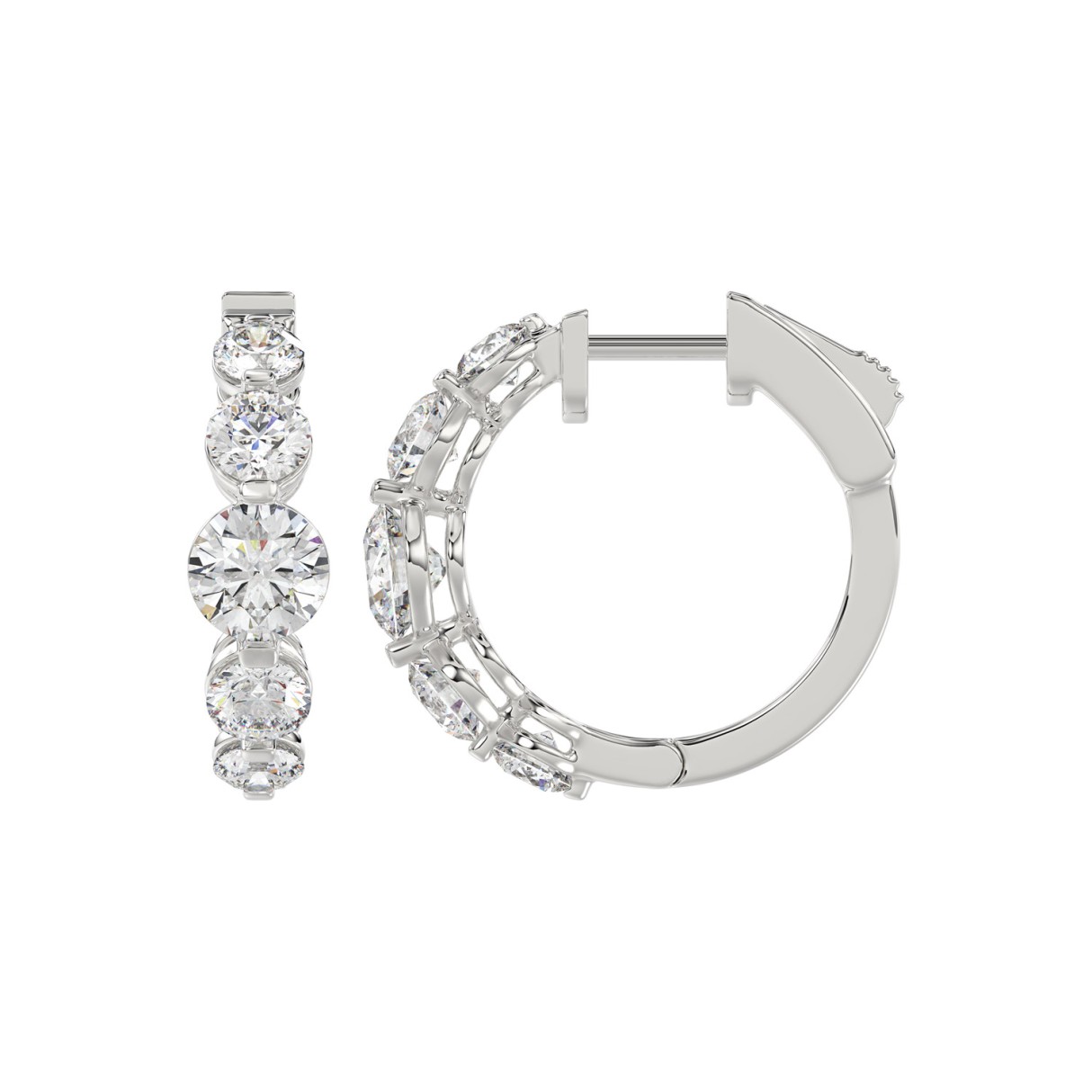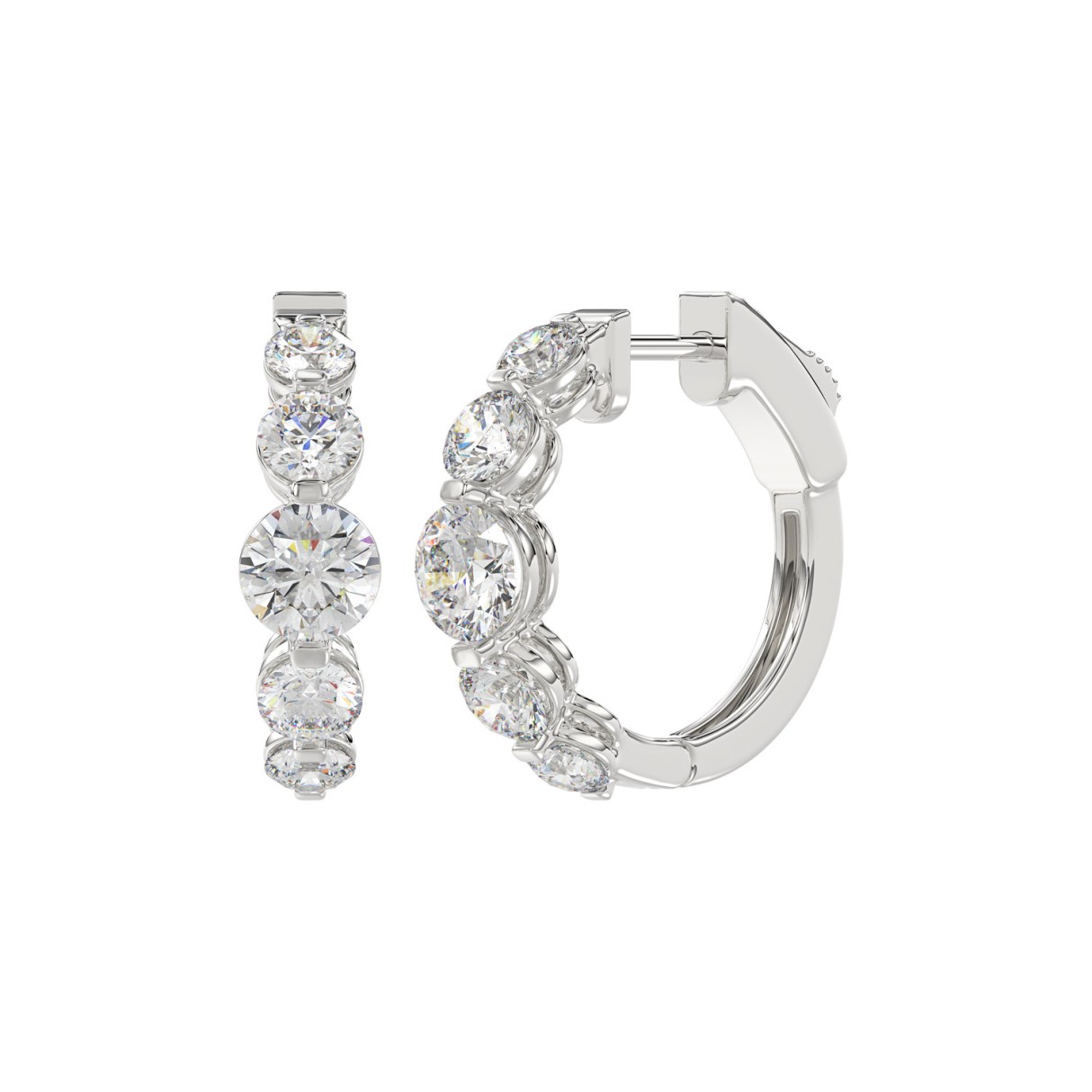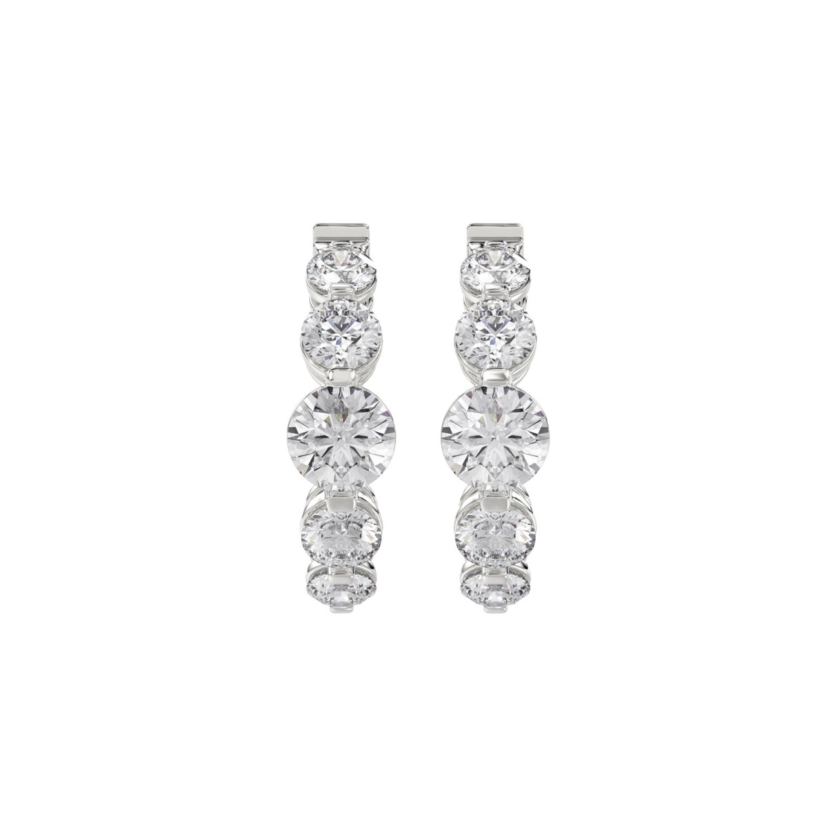 14K WHITE GOLD 3 1/2CT ROUND DIAMOND LADIES HOOPS EARRINGS
