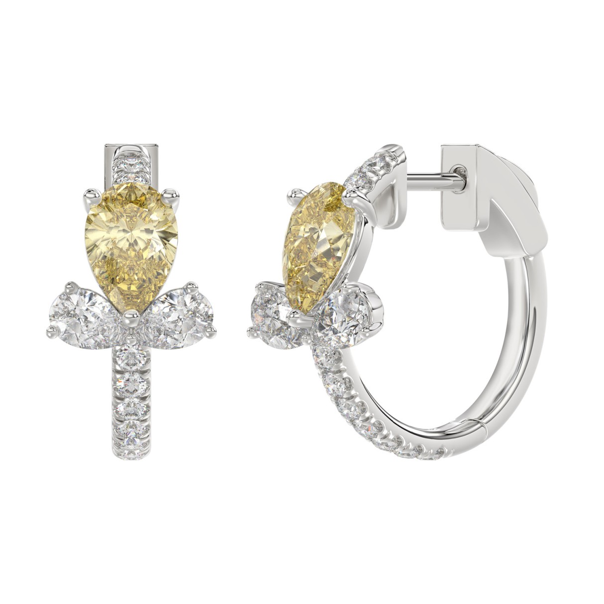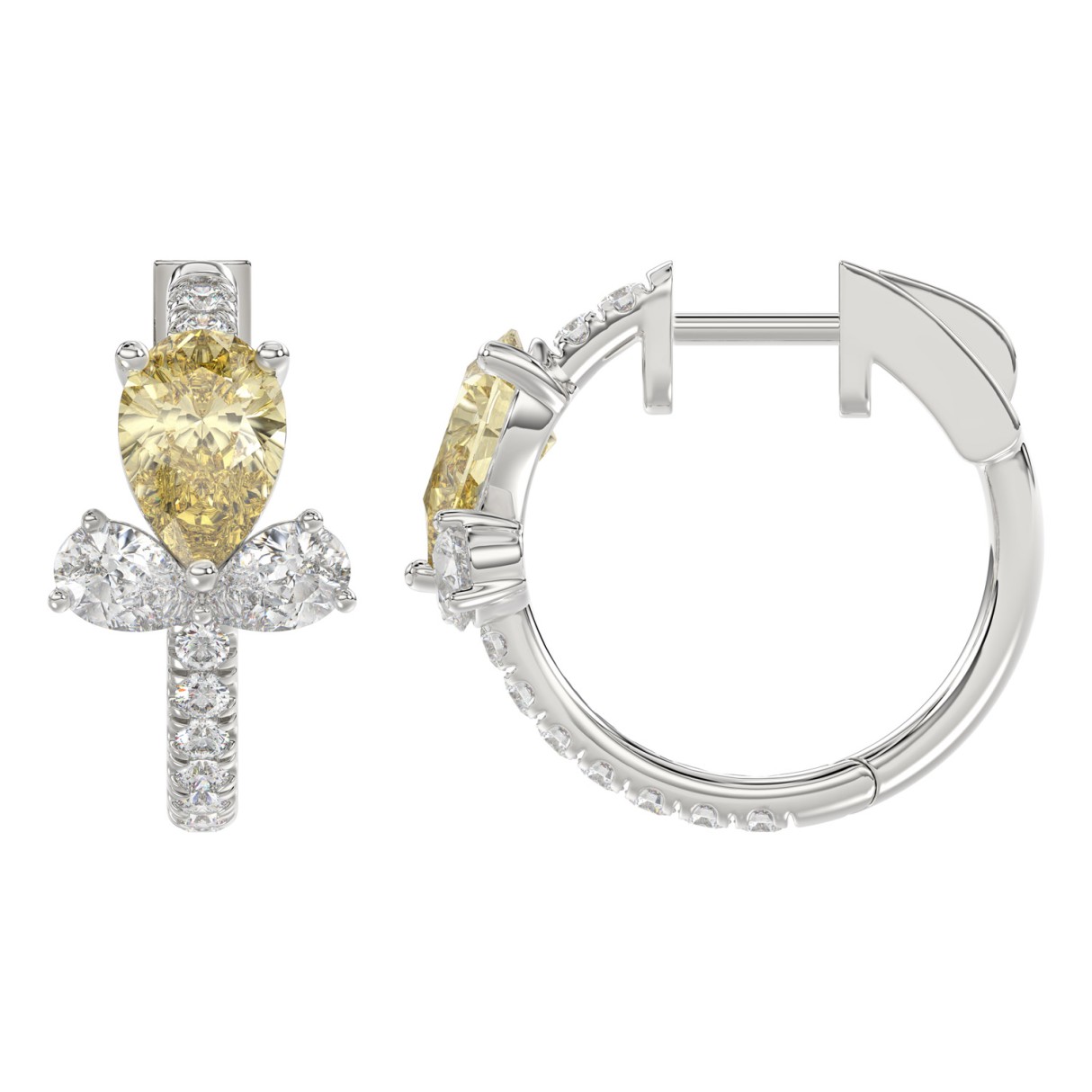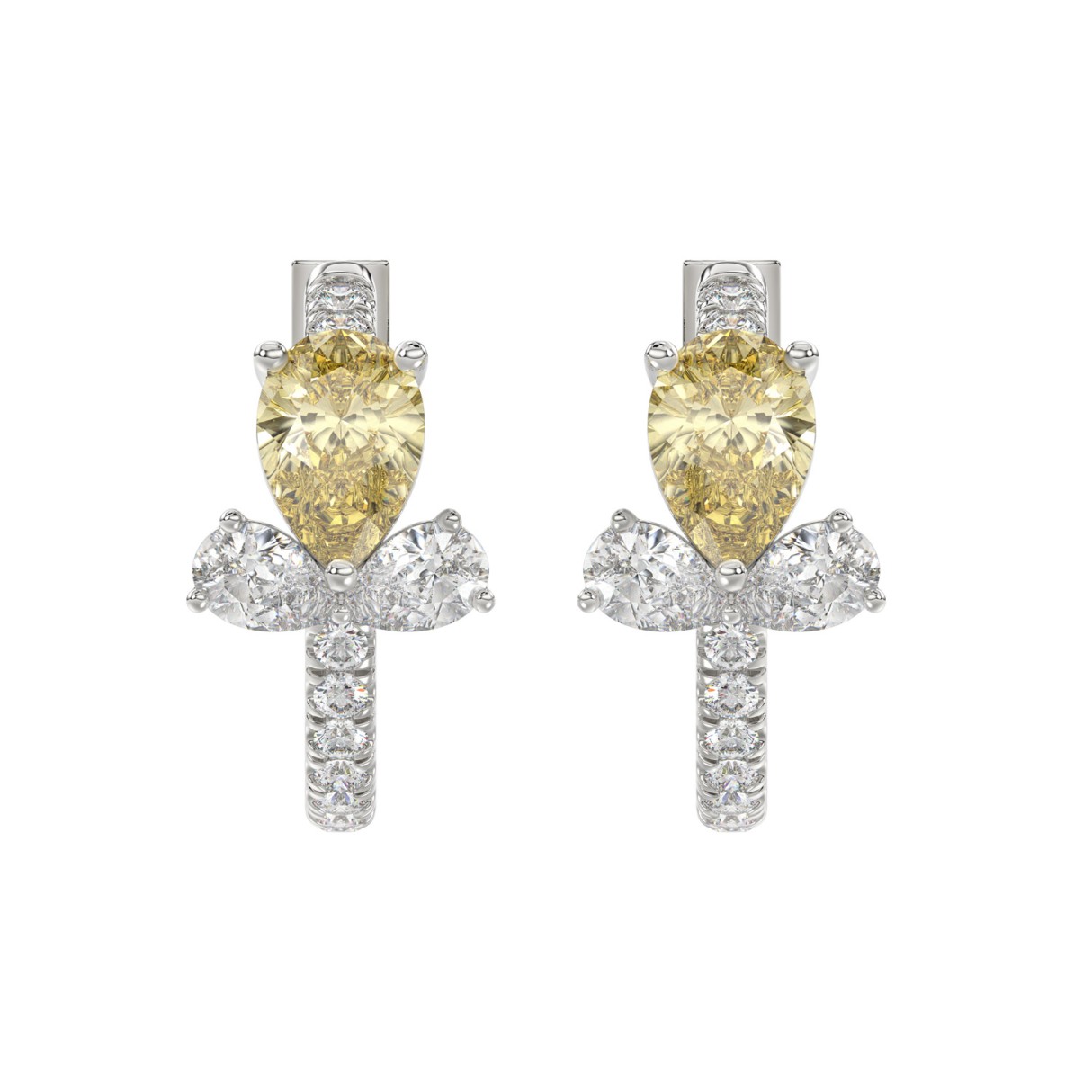 14K WHITE GOLD 3 1/4CT ROUND/YELLOW PEAR DIAMOND LADIES EARRINGS (YELLOW PEAR DIAMOND)