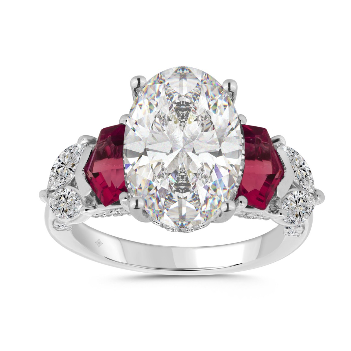 14K WHITE GOLD 3 3/4CT ROUND/OVAL/MARQUISE/RUBY CADILLAC DIAMOND LADIES RING (CENTER STONE OVAL DIAMOND 3CT)