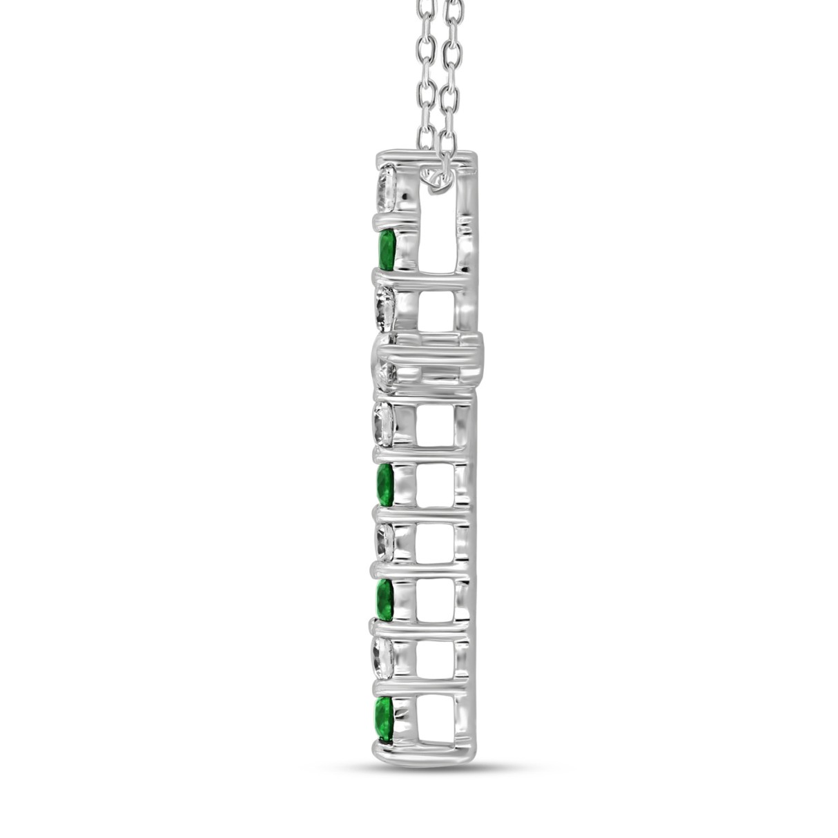 14K WHITE GOLD 3/4CT ROUND DIAMOND LADIES PENDANT (CENTER STONE GREEN EMERALD ROUND DIAMOND 3/8CT)