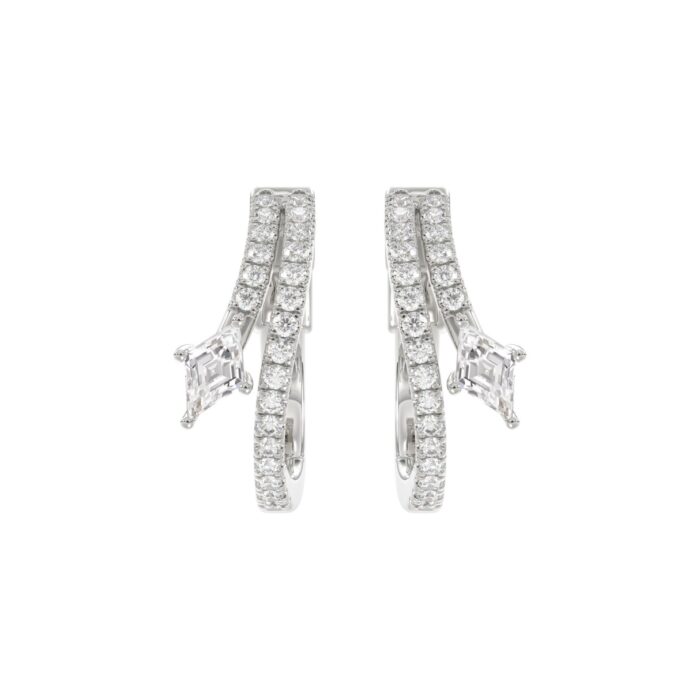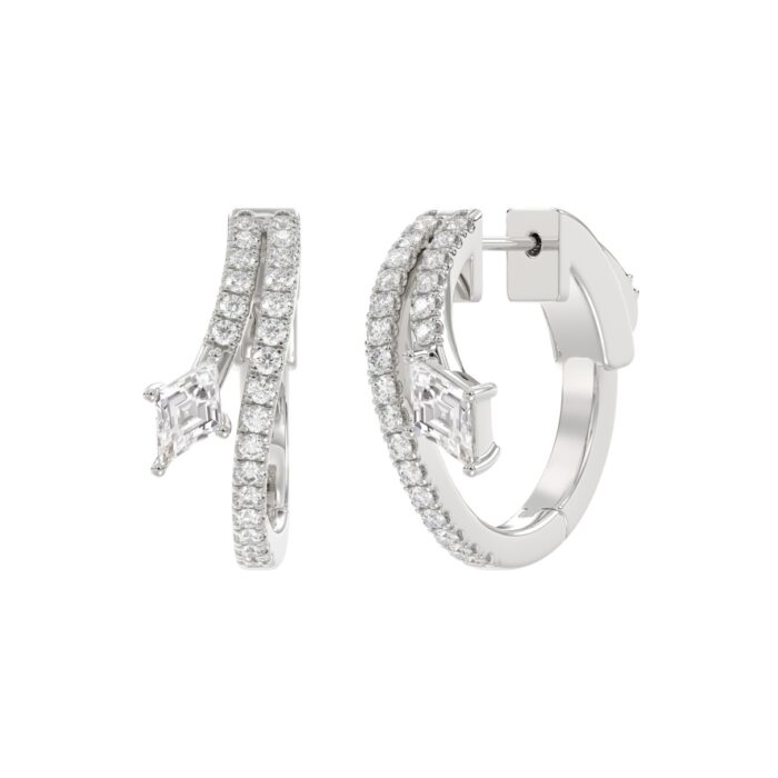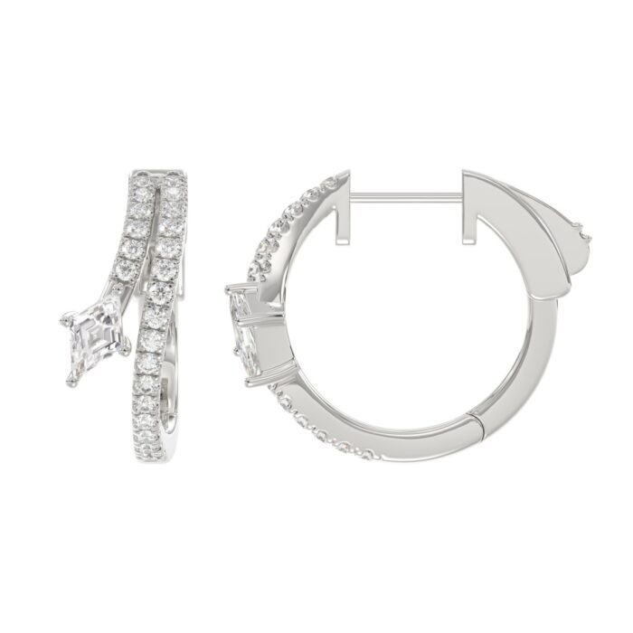 14K WHITE GOLD 3/4CT ROUND/LOZENGE DIAMOND LADIES HOOP EARRINGS